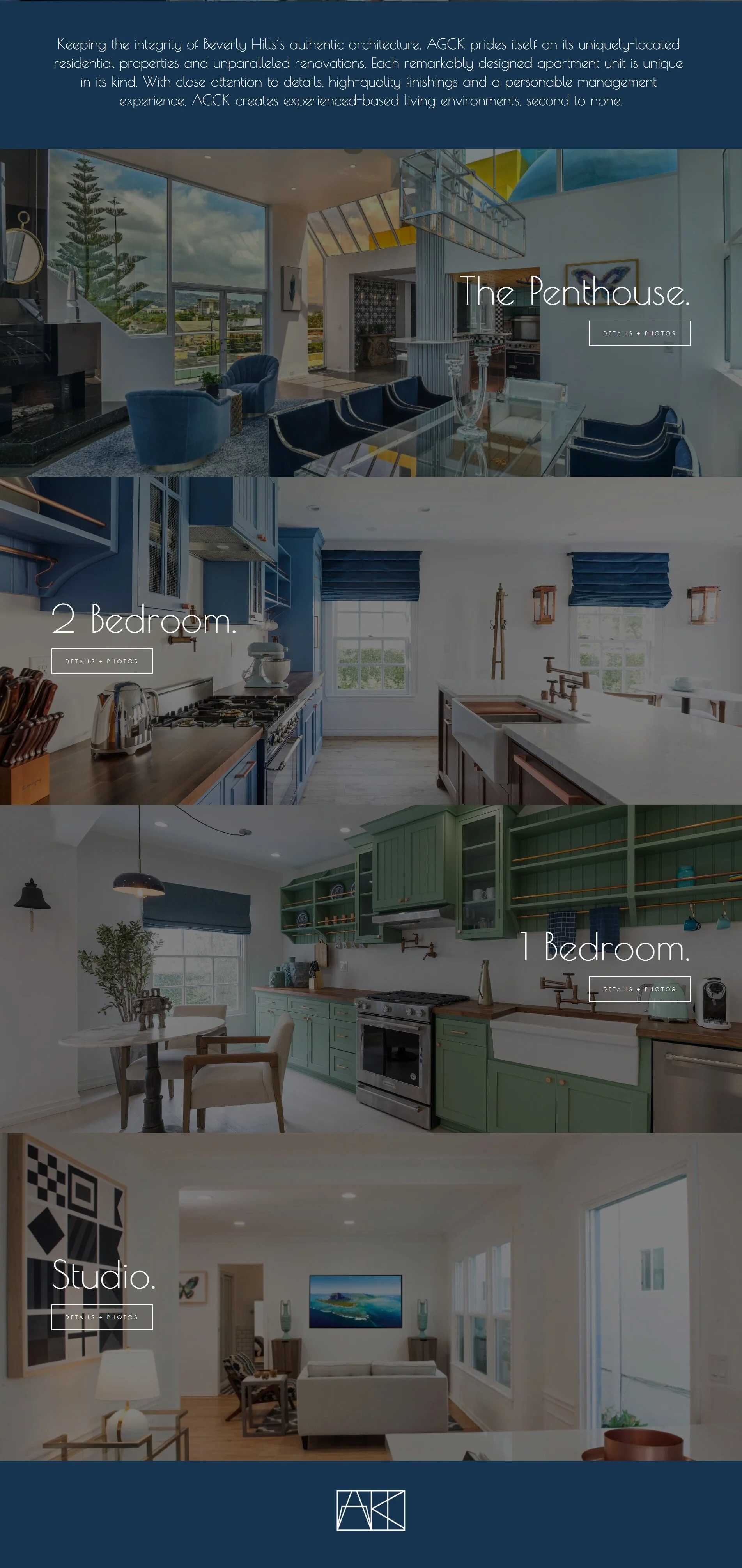 AGCK Properties just completed a remarkable renovation of a Beverly Hills apartment building including a penthouse originally designed by Frank Gehry. Understandably, the website needed to be just as stunning as the architecture.