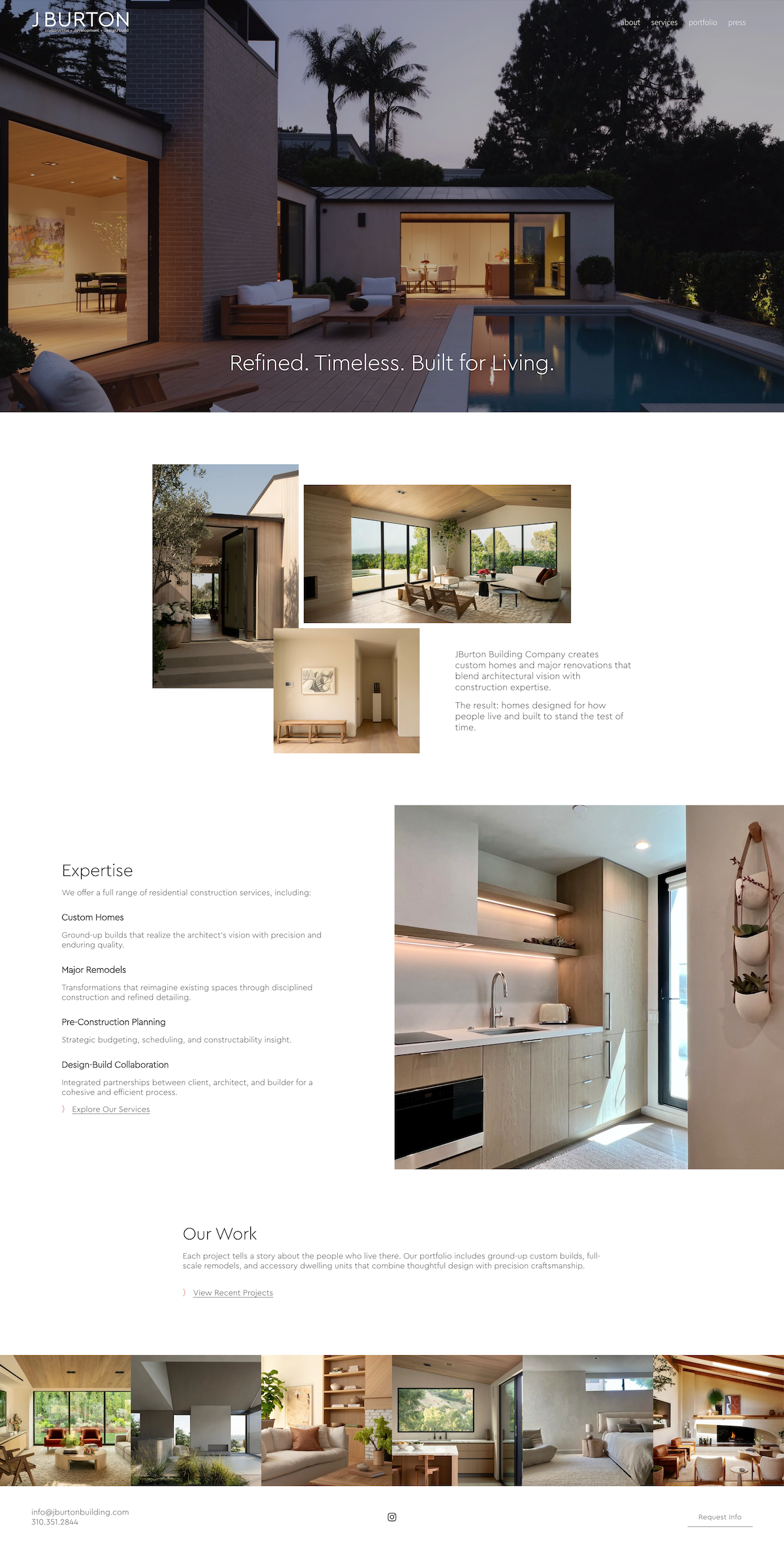 There is a particular kind of confidence that belongs to builders who have nothing to prove. JBurton Building Company creates custom homes and major renovations across the full arc of residential construction, from ground-up builds that realize an architect's vision to transformations that reimagine what an existing space can become.
